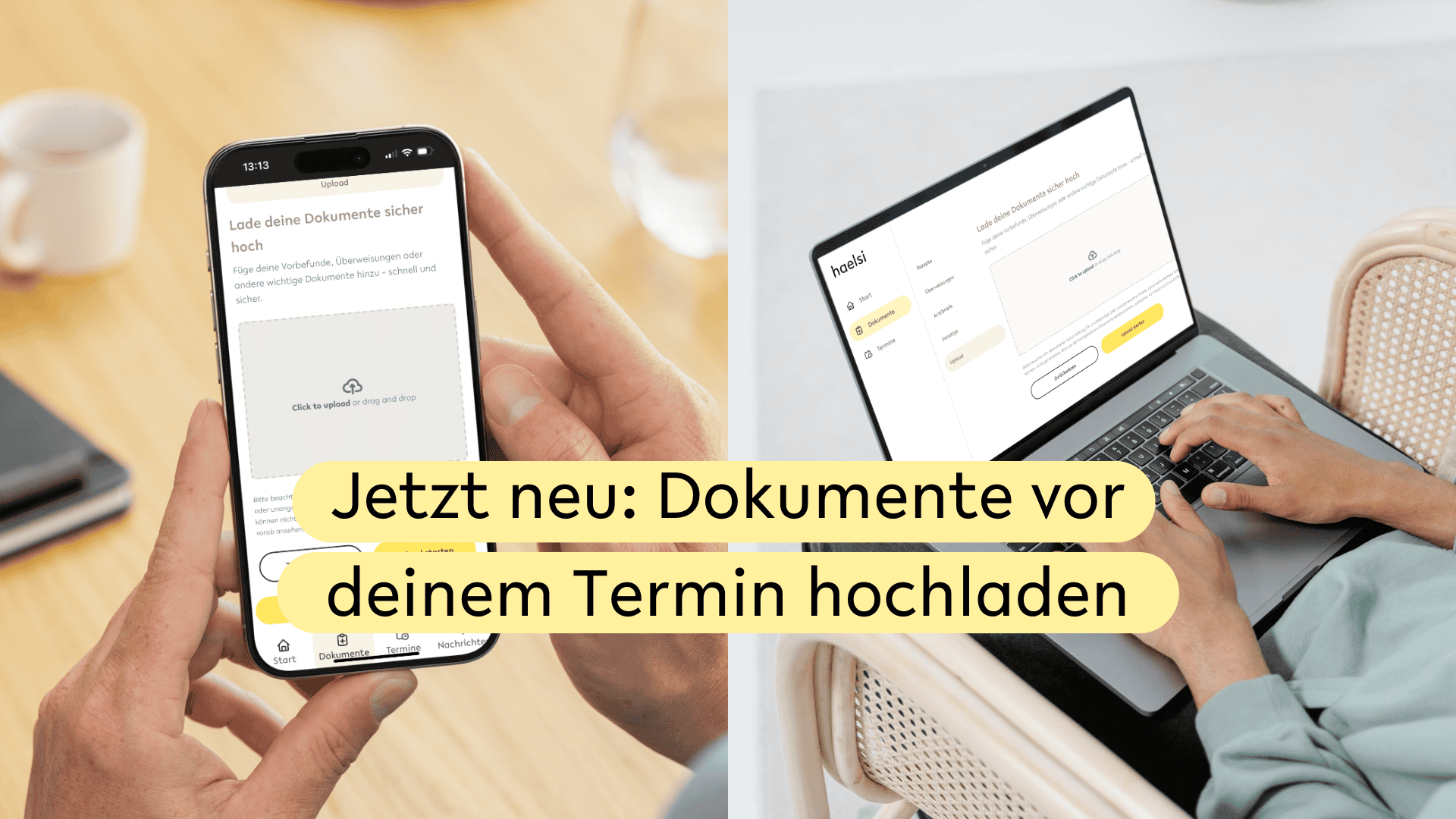 Ab sofort kannst du deine Dokumente, Überweisungen und Fotos bequem vor deinem Termin mit deinem Behandlungsteam teilen. Lade sie dafür ganz einfach in dein Patientenportal.